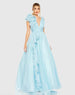 Light Blue Ruffle Shoulder V-Neck Chiffon Gown