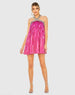 This High Neck Open Back Embellished Trapeze Dress features a halter neckline and a playful trapeze silhouette. The embellished fabric adds a touch of elegance to this stylish dress, making it perfect for any occasion.