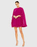 Our High Neck Ruffle Hem Cape Mini Dress is a chic and elegant addition to your wardrobe. Featuring a unique cape design that adds a dramatic flair, and a playful ruffle hem, it’s perfect for both formal events and nights out, combining sophistication with a fun, standout look.