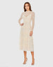 Nude Sequined Illusion High Neck Long Sleeve Midi Dress